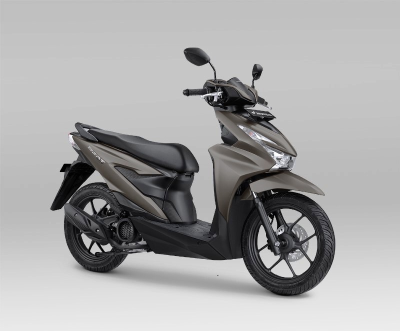 Varian New Honda BeAT memlik kelir dan striping baru pada tipe Deluxe Smart Key, yaitu Deluxe Matte Brown yang bernuansa cokelat doff.